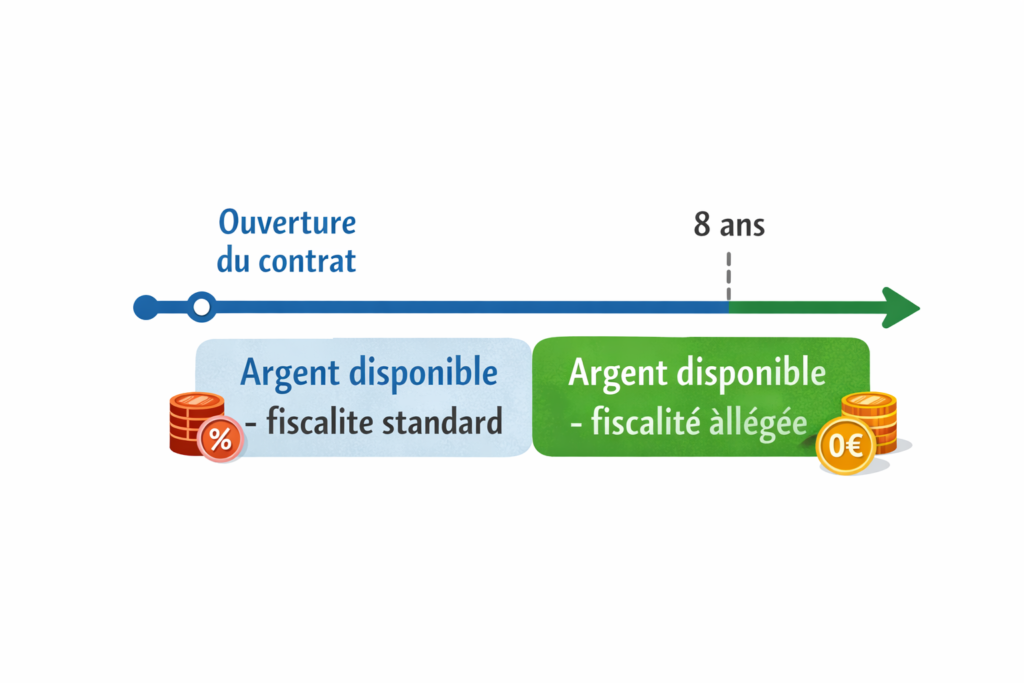 👉 Les 8 ans concernent uniquement la fiscalité, pas la disponibilité de l’argent.